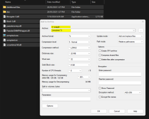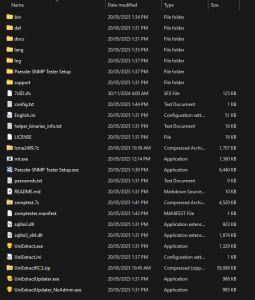 Select all the files in the SNMP Tester Extracted directory, and create a 7z archive in the c:\install directory. Name the file snmptest.7z. Ensure that the snmptest.exe file is the root of the 7z archive, not a subdirectory.