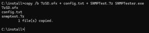 copy /b 7zSD.sfx + config.txt + SNMPTest.7z SNMPTester.exe